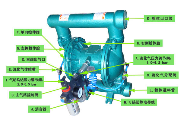 粉泵可以成功輸送堆積密度為80~880kg/m3的粉末狀、輕質、干燥、易流動的粉體。廣泛應用于炭素、白炭黑、粉末活性炭、石墨細粉、磷酸鐵鋰、納米碳酸鈣、氫氧化鋁、鈦白粉、淀粉、血球蛋白粉、活性白土、樹脂粉、顏料粉、阻燃劑、固體甲醇鈉及精細化工、醫藥原料及中間體生產行業以及所有的輕質粉末輸送,用途廣泛。