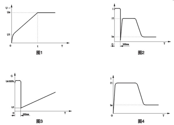 ◆ 斜坡電壓起動(dòng):一般用于對(duì)起動(dòng)平穩(wěn)性要求較高的場(chǎng)合,輸出電壓波形如圖1